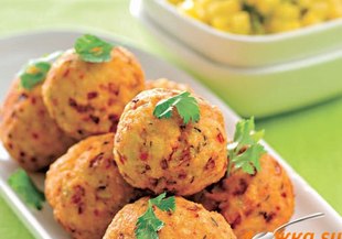 Хавайски кюфтета от риба с кокос, поднесени върху ананас с канела.