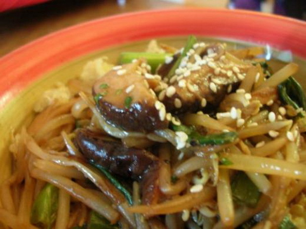 Гъби шийтаке и соеви кълнове в сос от стриди