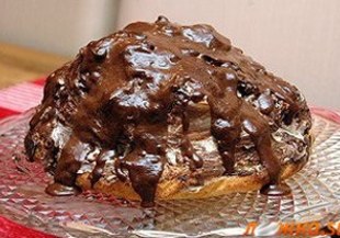 6. Пригответе глазурата като кипнете сметаната, какаото, захарта и маслото при непрестанно разбъркване за няколко минути. Оставете настрани да се охляди и залейте тортата с нея.