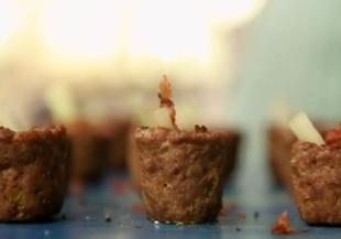Шотове за приятели или най-забавната рецепта за алкохолни хапки с месо. От кайма се оформят малки чашки, които пълним не с какво да е, а познатия на всички коктейл Блъди Мери с доматен сок и водка. Подобно посрещане носи купонджийски дух и определено ще бъдете запомнени, ако съумеете да приготвите тази иначе лесна, но и малко пипкава рецепта за нестандартен коктейл. Ако ви се стори, че сте загубили повече от необходимото време в готвене, то пропуснете по желание частта с бекона и целината. Можете да опитате да поднесете и друг вид аперитив с доматен сок в чашки, направени по същия начин.