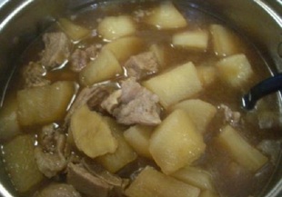 Задушени телешки гърди с картофи.
