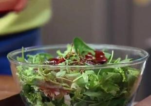 Ароматна свежа салата от листни зеленчуци със сос от малини, мащерка, горчица, балсамов оцет и мед готват Лора и Стоян, за да покажат как да се поглезим в топлото време с нещо вкусно, нискокалорично, здравословно и елегантно, което може да е предястие или леко основно.
