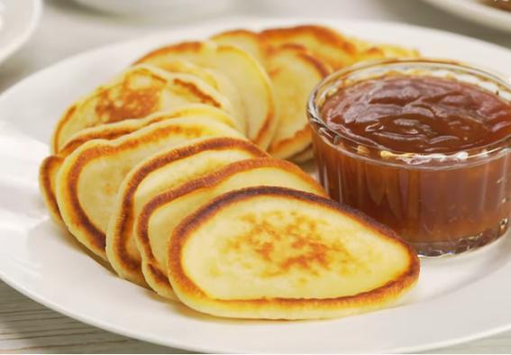 6. Поднесете малките палачинки със соса за топкане. Хапвайте докато са топли.