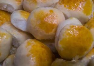 Втасалото тесто се премесва, разделя на части и всяка от тях се намазнява много добре и се разточва на кора. От нея с отвора на чаша се режат кръгове, в които се завива готовата плънка. Гледайте във видеото, за да разберете точните продукти и как се прави ястието. Готовите топчета се редят в тава, мажат се с разбит жълтък и се пекат до позлатяване в предварително загрята на 180 градуса фурна - около 20-30 минути.