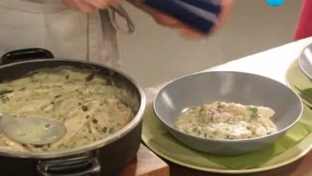 - Нещо като пиле фрикасе, но направено на яхния с брашнен сос и лимонов сок.