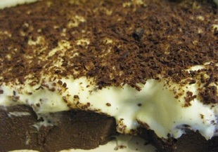 1. Сипете сметаната върху оформения шоколадов пудинг. Оставете в хладилник за около час. Украсете с натрошен тъмен шоколад преди сервиране.