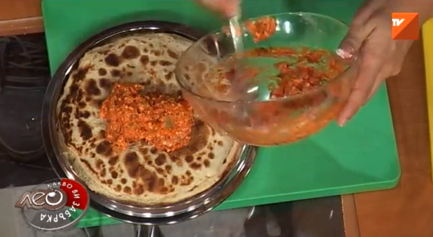 Страхотно предложение за закуска или брънч в почивните дни - солена торта от палачинки с месо, сирене, лютеница, майонеза и руска салата. С такова богато ястие определено ще се заситите.