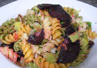 Салата с печено цвекло, паста и праз лук