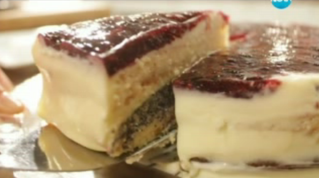 - Бърза домашна многопластова торта със сусам, маково семе и желирана глазура от горски плодове.