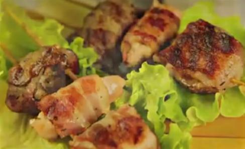 Шишчета с пилешко, бекон, гъби и дробчета.